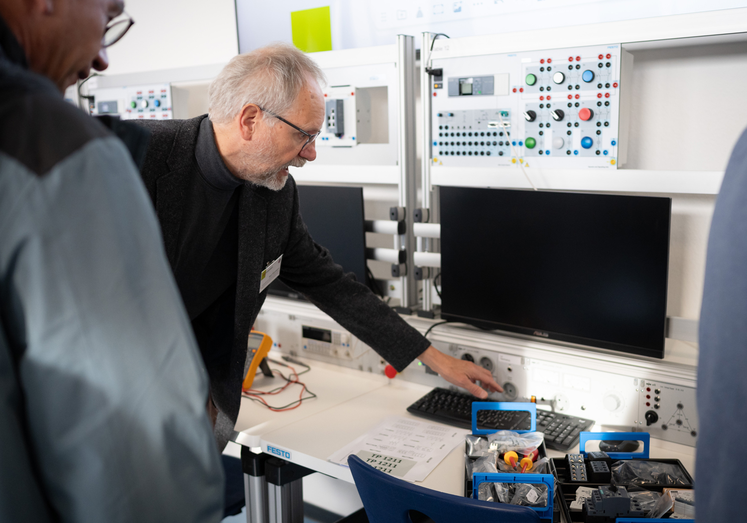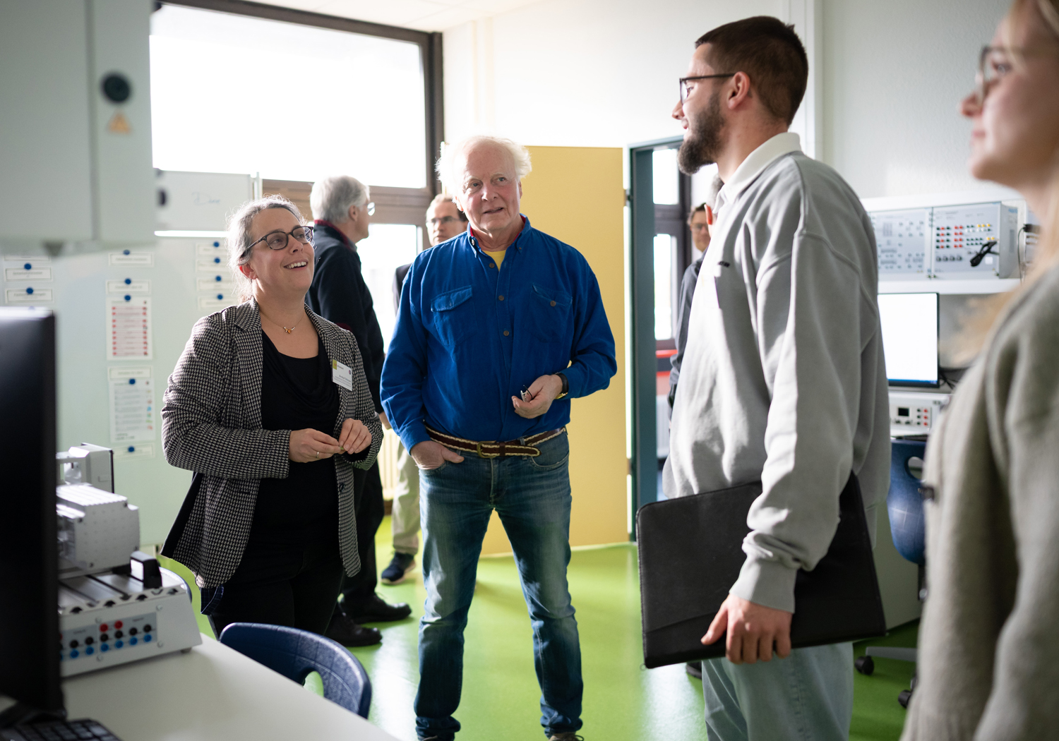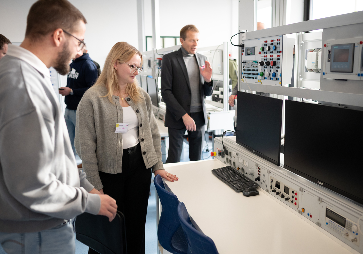 Am 29. Oktober 2025 haben wir das feierlich gefeiert – mit Banddurchschnitt, vielen neugierigen Blicken und noch mehr guten Gesprächen. Unter den Gästen: Herr Terodde und Herr Kosanke vom Schulträger, Herr Ivens von der IHK Aachen sowie über 30 Ausbilderinnen und Ausbilder und Partnerbetriebe aus den Fachrichtungen Geräte- und Systemelektronik, Betriebstechnik und Automatisierungstechnik. Ihre Botschaft war eindeutig: Diese Labore sind ein Gewinn für die Region – und für den Fachkräftenachwuchs.