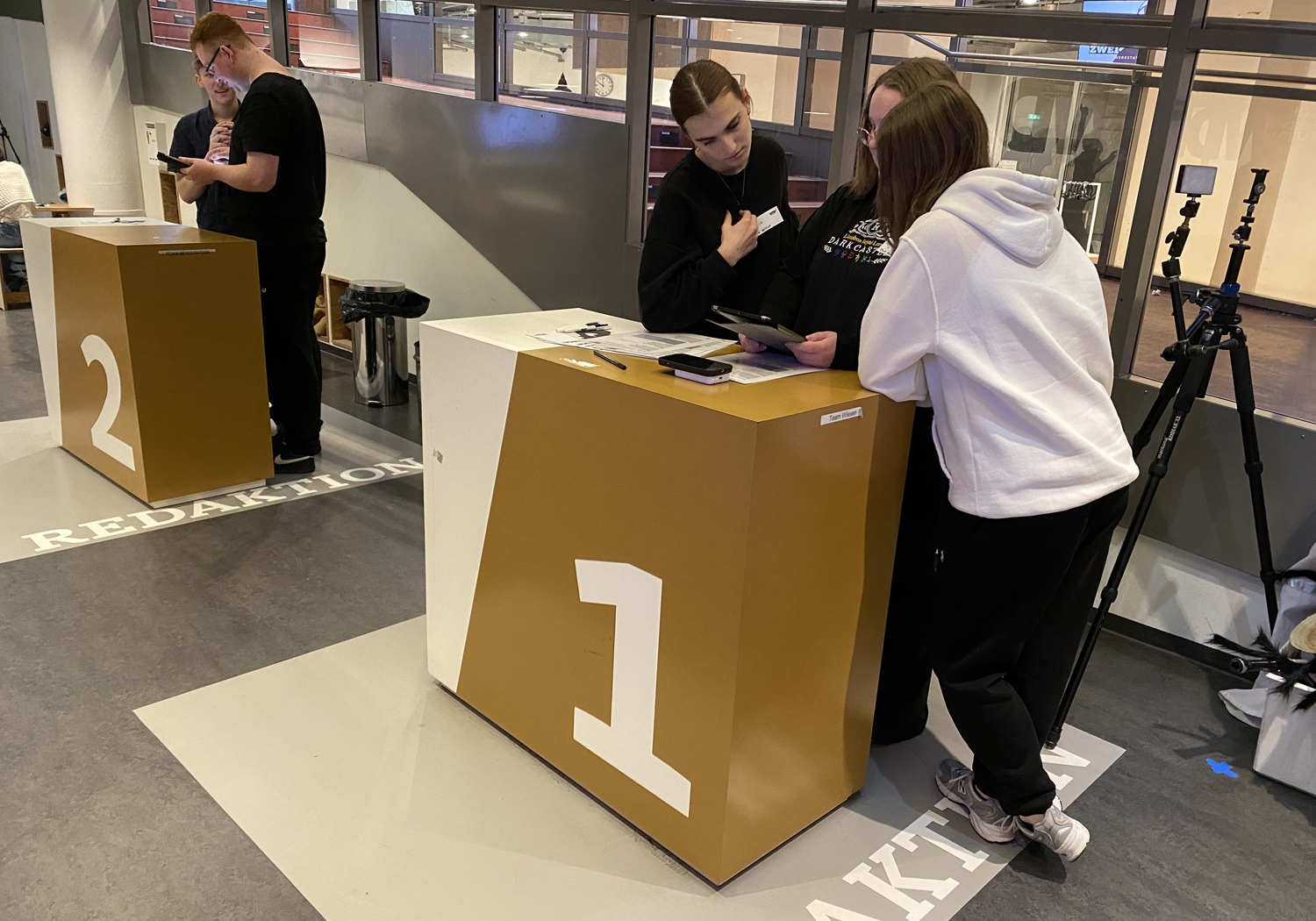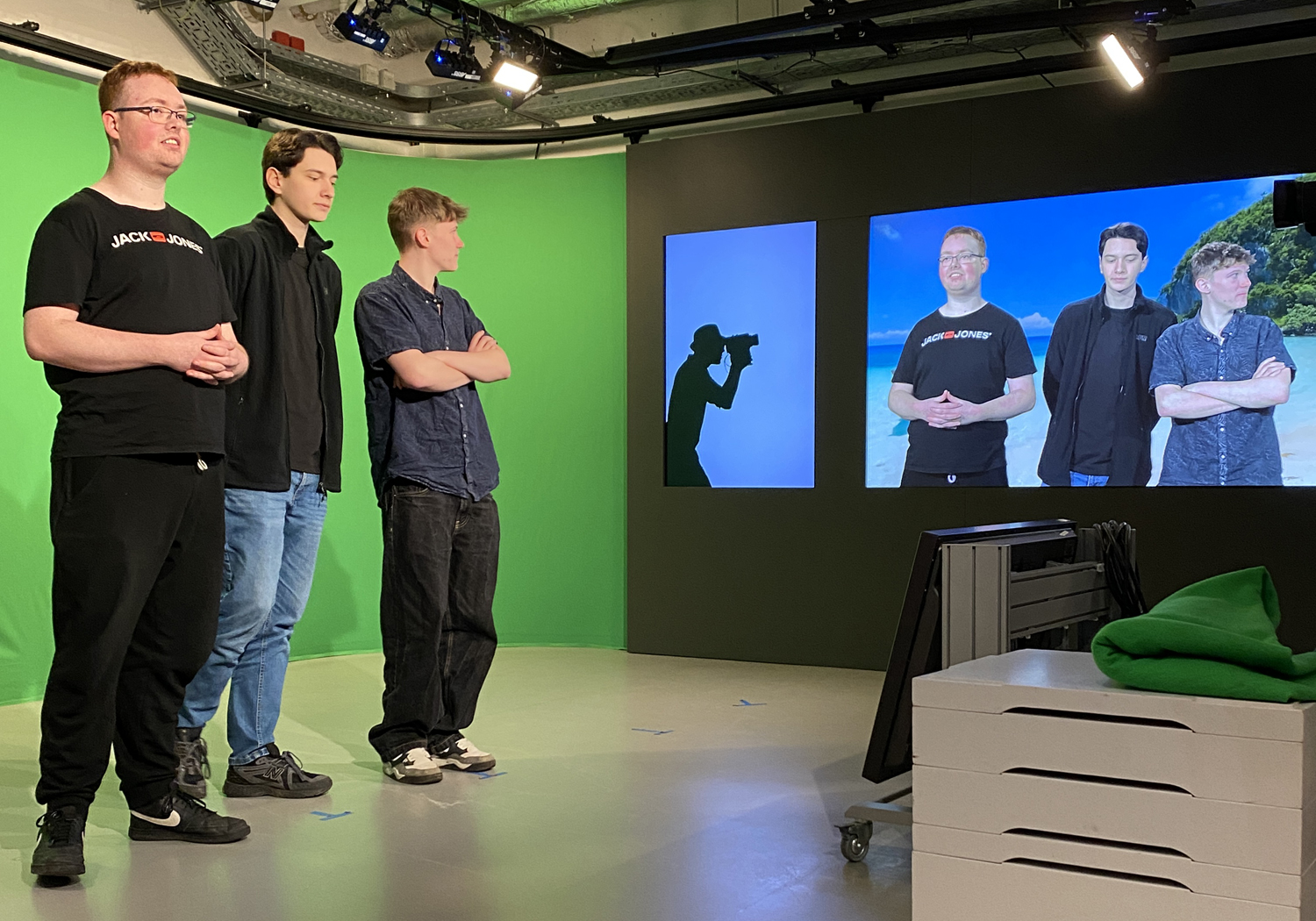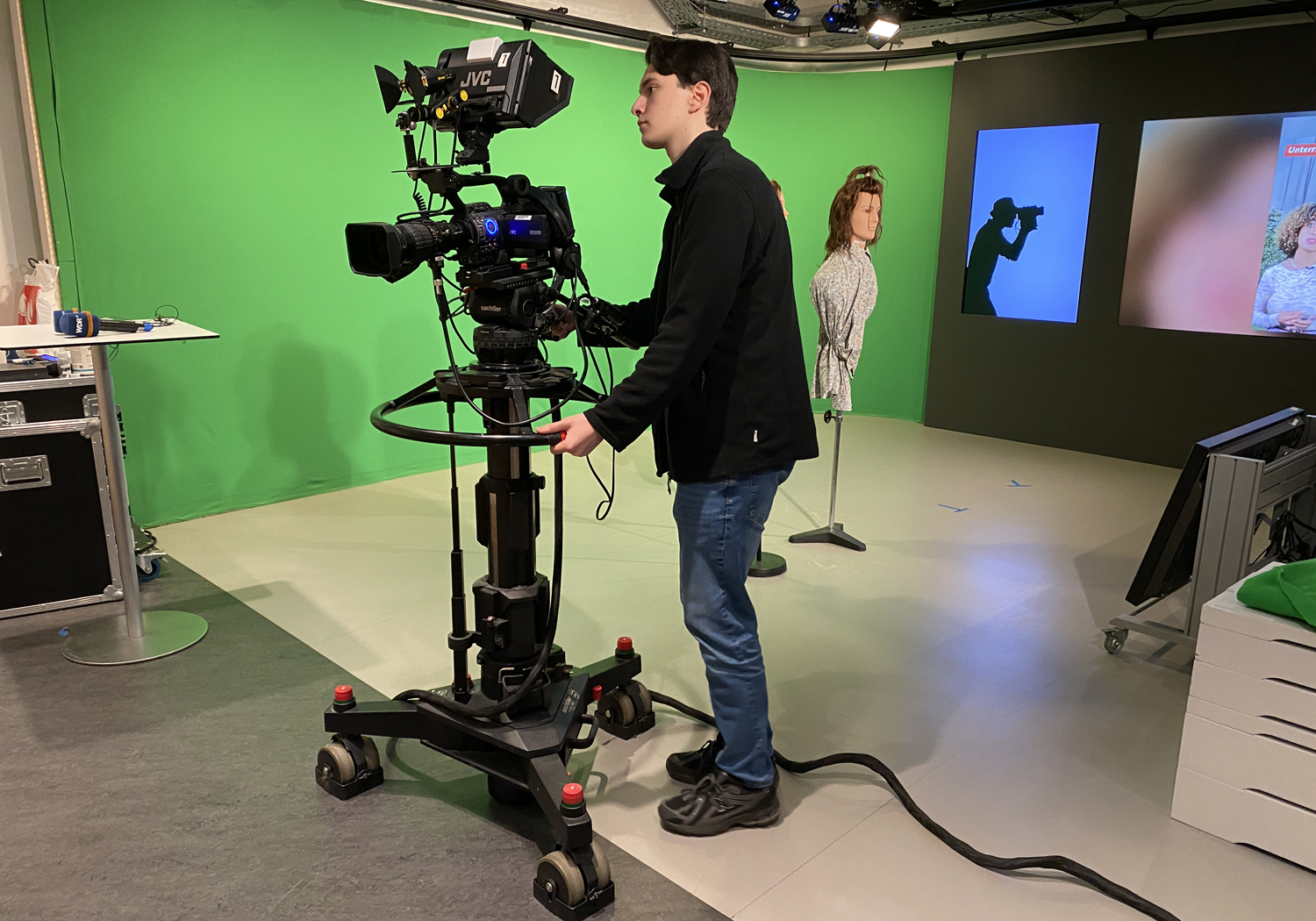 In kompakten Produktionsphasen entstanden kurze Beiträge – von der Idee über die Probe bis zur finalen Aufnahme. Dabei rotierten alle Schülerinnen und Schüler durch zentrale Filmjobs: Moderation, Kamera, Regie, Bild- und Tonmischung sowie Requisite.