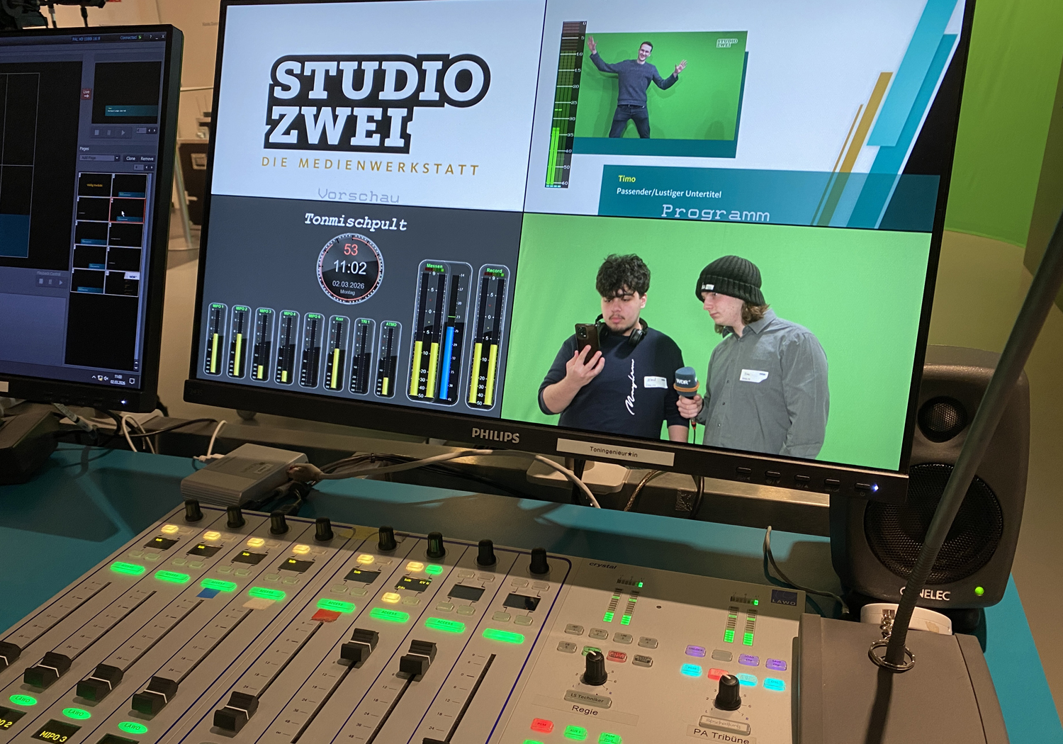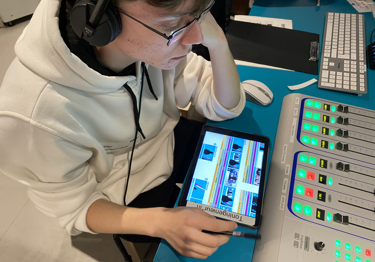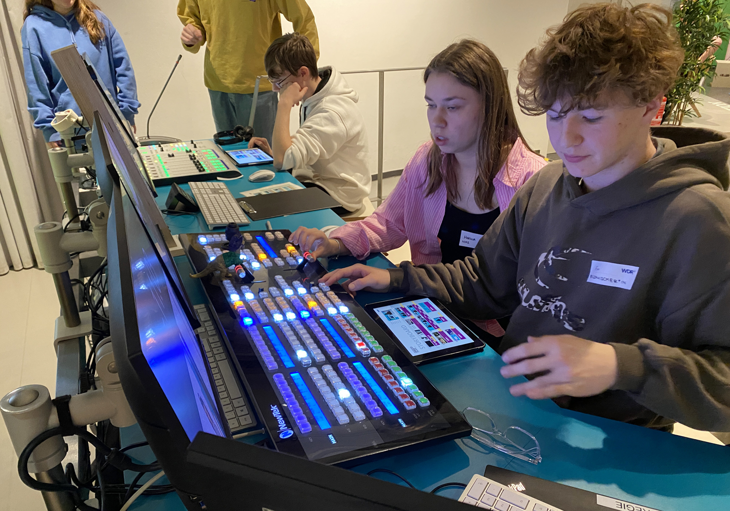 Hands-on im Profi-Studio: Unsere GTA-Mittelstufe mit dem Schwerpunkt „Medien und Kommunikation“ ging beim WDR in Köln in Studioproduktion. Mit Unterstützung einer WDR-Crew entwickelten die Auszubildenden eigene Moderationen, führten durch die Sendung und arbeiteten an Kamera, Ton, Licht und Schnittpult.