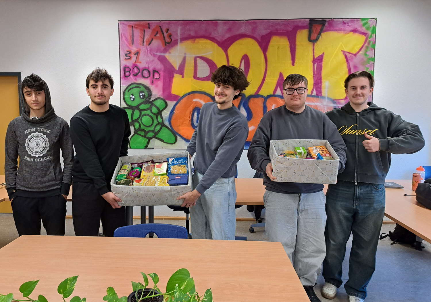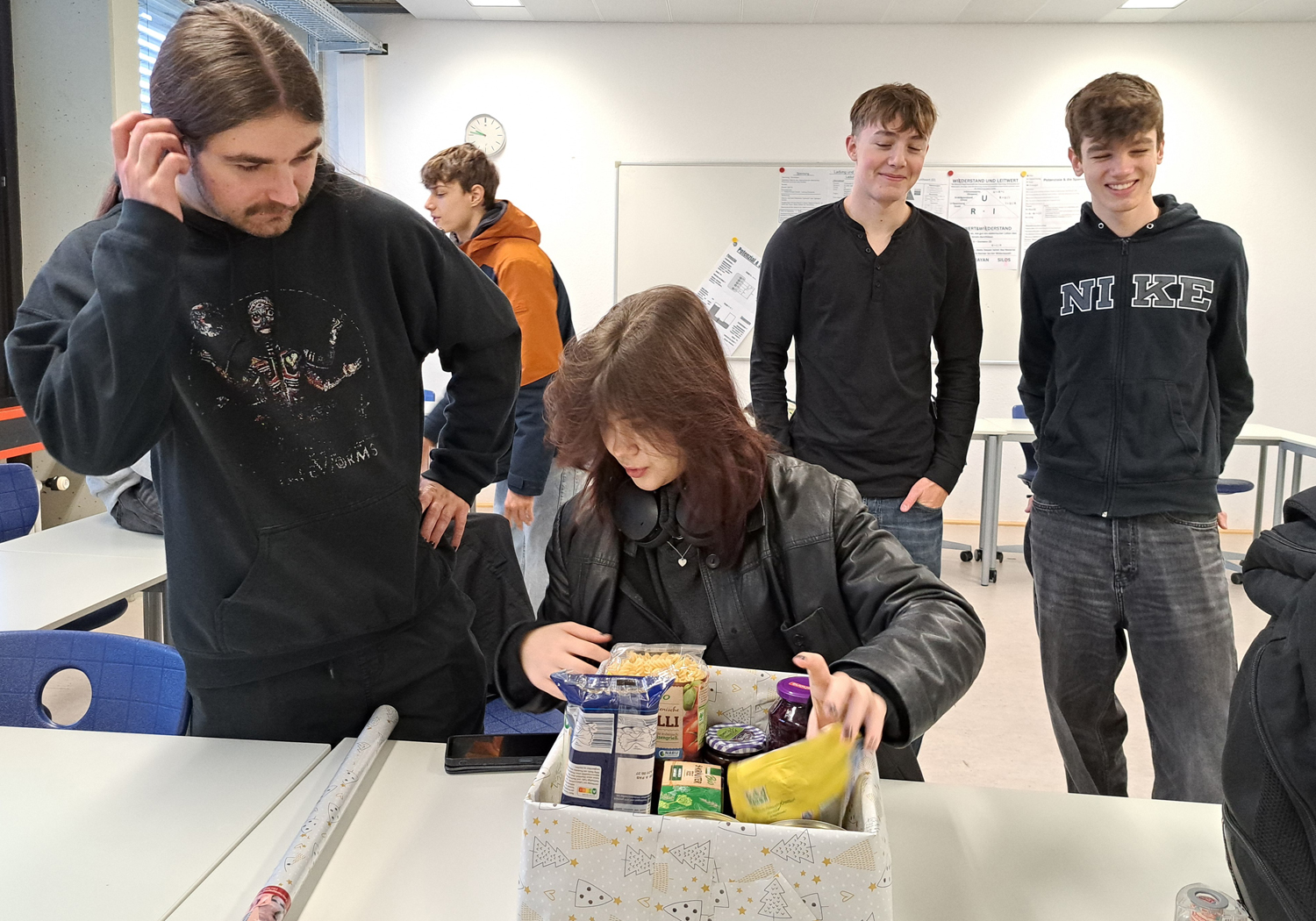 In diesem Jahr haben alle unsere ITA-Klassen an der Weihnachtskistenaktion der Aachener Tafel teilgenommen. Gemeinsam haben sie mindestens eine Kiste pro Klasse gepackt, sodass insgesamt sieben Kisten zusammengekommen sind.